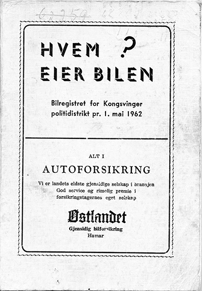en oversikt over alle biler registrert i Kongsvinger