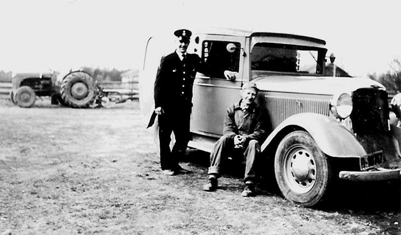Olav Fosshaug hadde denne varebilen, en Dodge fra 1935. Personene på bildet er ukjente.
